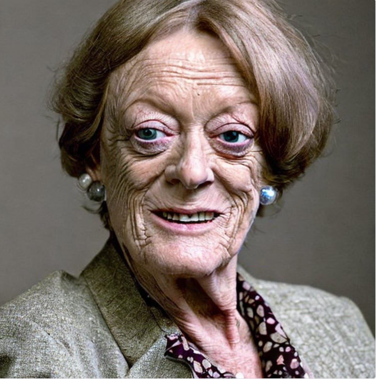 To identify what AI got wrong, I am compelled to search for real photographs of Maggie Smith. I’m noticing the small details about her. I’m wondering if her children remember those things about her. I’m thinking about things I must try to remember about my mother before she is gone. I’m thinking of all the small, strange details that make up the fullness of her and can never be replicated; the small, strange details that I will always recognize, with my whole body.